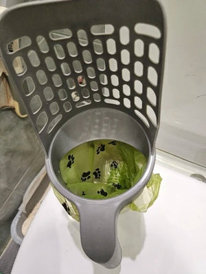 The scoop deposits clumps directly into the attached bin or a disposable bag. This keeps hands clean and gives a neat place for waste until disposal, saving time and mess.