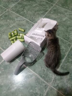 Use a scoop with built-in trash can to speed daily cleaning. Saves minutes each time and prevents tracked litter, keeping floors tidy and reducing cleanup stress after work.