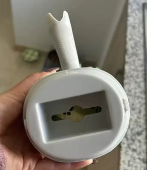 Absolutely. The compact shape fits most cabinets or beside the litter box, keeping countertops clear and accessible.